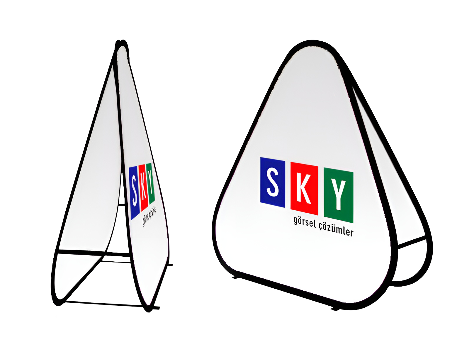 Dış mekan etkinliklerimizde kullanmak için Üçgen A Pano’yu tercih ettik. Tahminimizden çok daha sağlam ve dengeli duruyor. Kumaş baskının suya ve güneşe dayanıklı olması büyük bir artı. Sky Görsel Market, kaliteli ve güvenilir ürün sunuyor.
